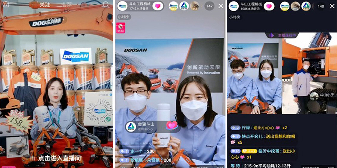 “The shares of product marketing and customer support using live contents broadcast based on a SNS platform such as TikTok and Kwai is expanded in China”, Doosan Infracore announced on the 24th of March.
