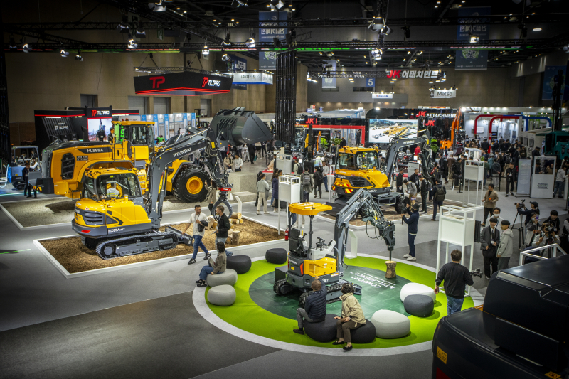 ‘생산성’ 테마에서 HD현대건설기계는 후방 돌출부가 없어 도심지에서 기동성이 뛰어난 미니 굴착기(HX17AZ)를 비롯해, 에어 서스펜션과 냉·온풍 시트가 적용돼 쾌적한 운전환경을 제공하는 6톤급 소형 휠굴착기(HW65A+), 고강도 설계구조로 거친 환경에서도 문제없는 초대형 휠로더(HL985A) 등 국내 산업현장에 특화된 최신 장비들을 출품했다.