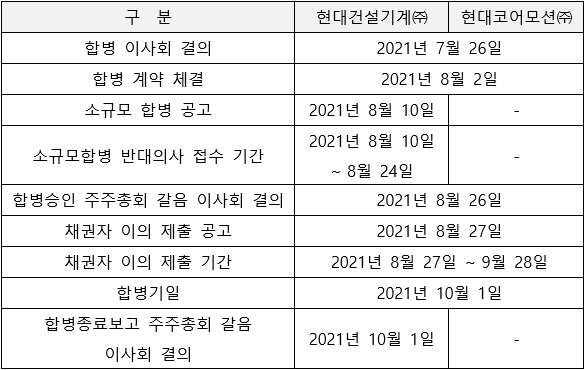 당사가 현대코어모션을 흡수합병하여 존속하고 현대코어모션은 해산하여 소멸함